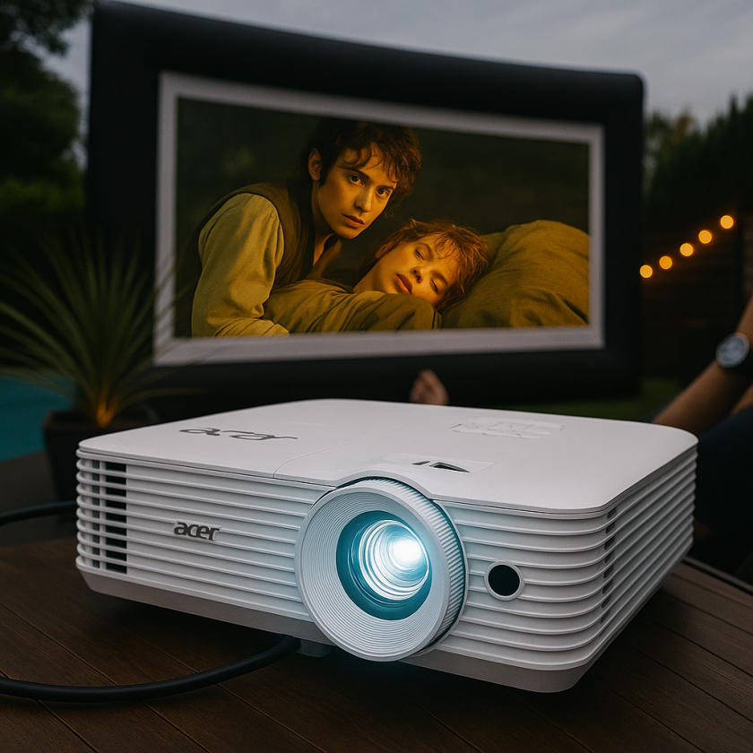 Der Acer Beamer liefert gestochen scharfe Bilder, satte Farben und beeindruckende Helligkeit – ideal für Filmabende unter freiem Himmel, Präsentationen oder Eventshows.